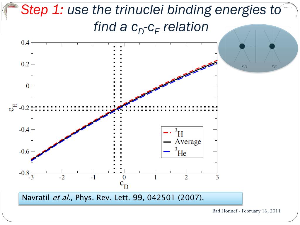Step 1: use the trinuclei binding energies to find a cD-cE relation Navratil et al., Phys. Rev. Lett. 99, 042501 (2007).