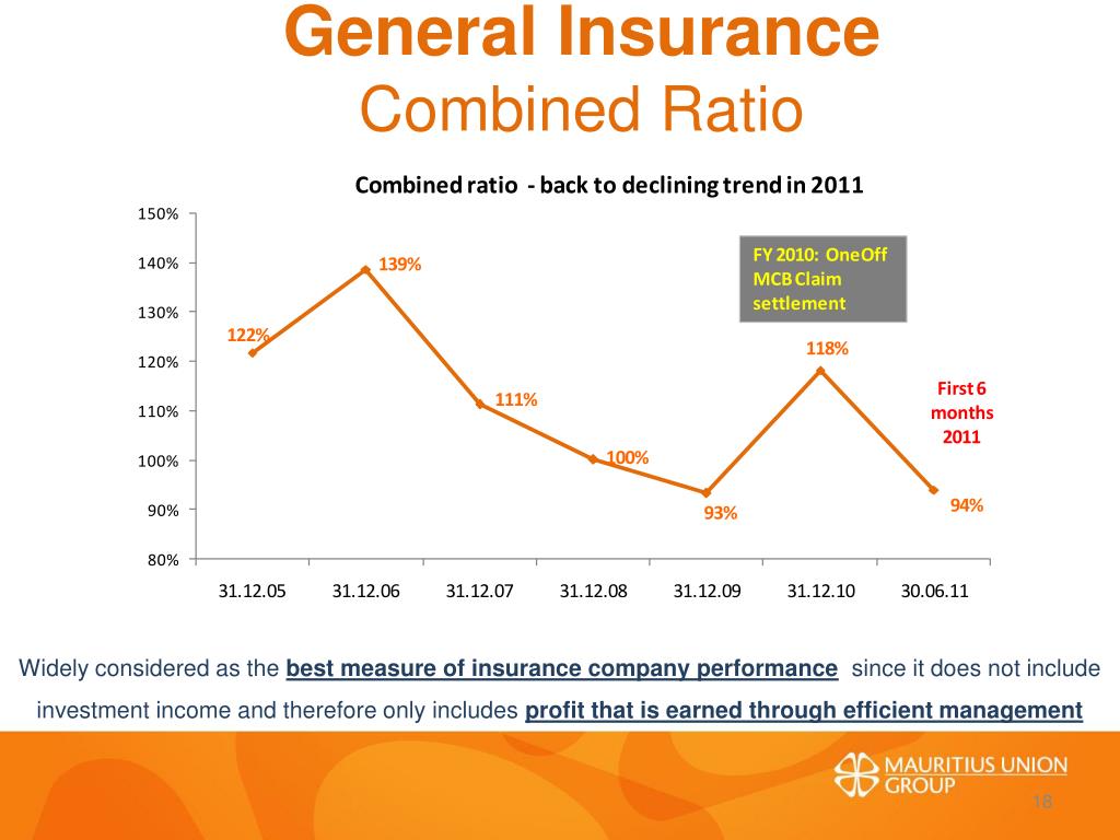 General Insurance Scope exists to improve underwriting efficiency further… Annual average Growth rates over last 5 years were: +21% Gross Premium +20% Net Earned Premium +65% Underwriting Profit, including 2010 MCB claim 17