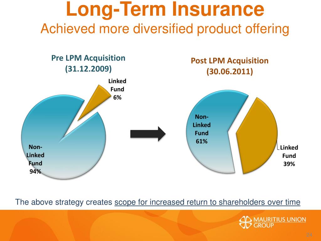 Long-Term Insurance Achieved more diversified product offering • The above strategy creates scope for increased return to shareholders over time 24