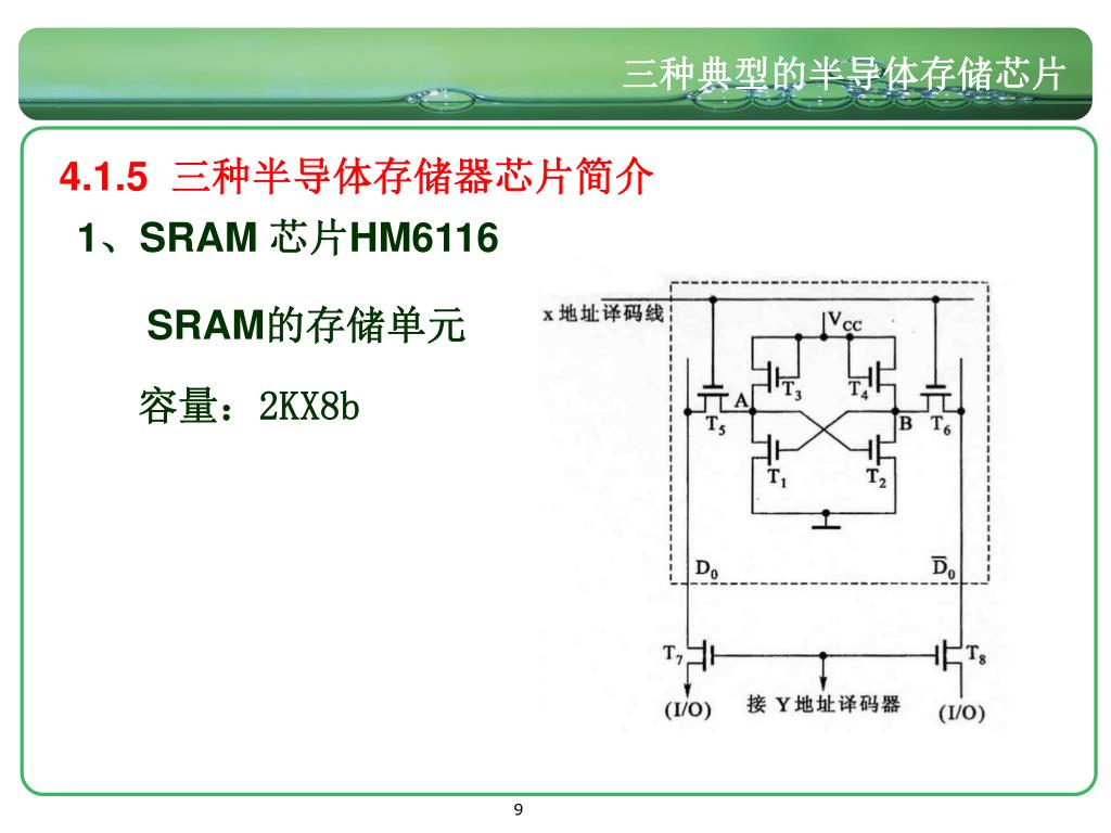 三种典型的半导体存储芯片 4.1.5 三种半导体存储器芯片简介 1、SRAM 芯片HM6116 SRAM的存储单元 容量:2KX8b