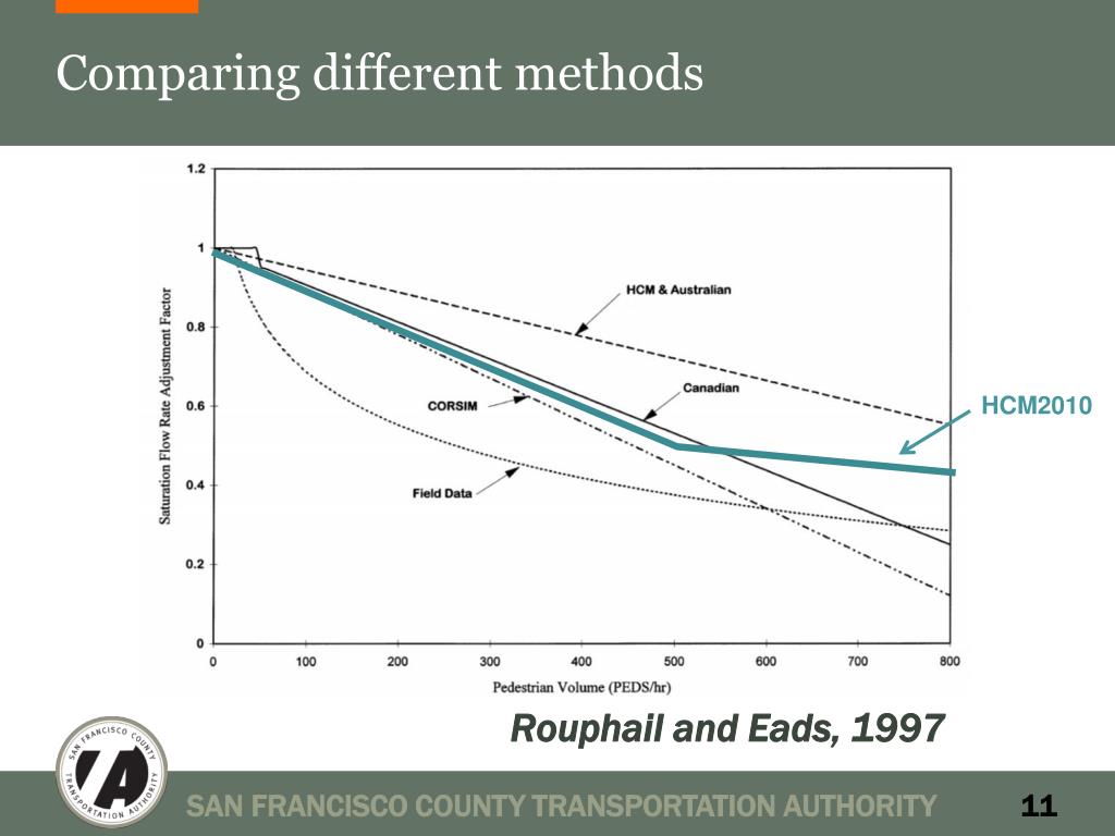 Comparing different methods HCM2010 Rouphail and Eads, 1997 SAN FRANCISCO COUNTY TRANSPORTATION AUTHORITY
