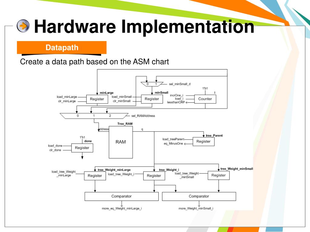 Hardware Implementation Datapath Create a data path based on the ASM chart