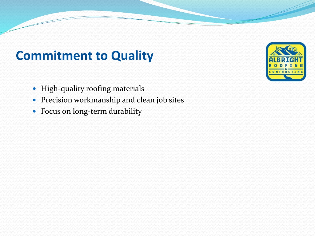 2. About Albright Roofing & Contracting • Established and trusted roofing contractor • Serving residential and commercial clients • Known for integrity, quality, and reliability