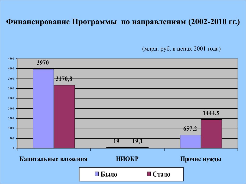 Финансирование Программы по направлениям (2002-2010 гг.) (млрд. руб. в ценах 2001 года)