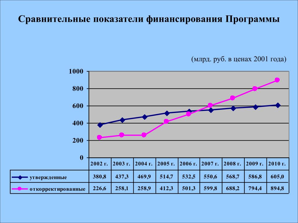 Сравнительные показатели финансирования Программы (млрд. руб. в ценах 2001 года)