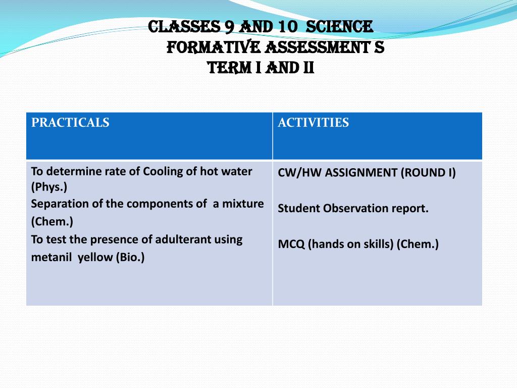 Good morning Dear Parents. TEXT BOOKS FOLLOWED FOR CLASS IX AND X IN OUR SCHOOL . Classes 9 and 10 science formative assessment s term i and ii . class 10 science . Open Text - Based Assessment Summative Examination-II March 2014 Science (086) : Class-IX Themes