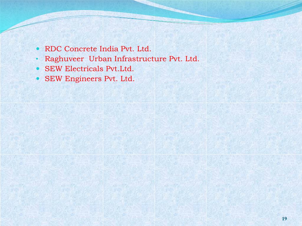 RDC Concrete India Pvt. Ltd. • Raghuveer Urban Infrastructure Pvt. Ltd. • SEW Electricals Pvt.Ltd. • SEW Engineers Pvt. Ltd.