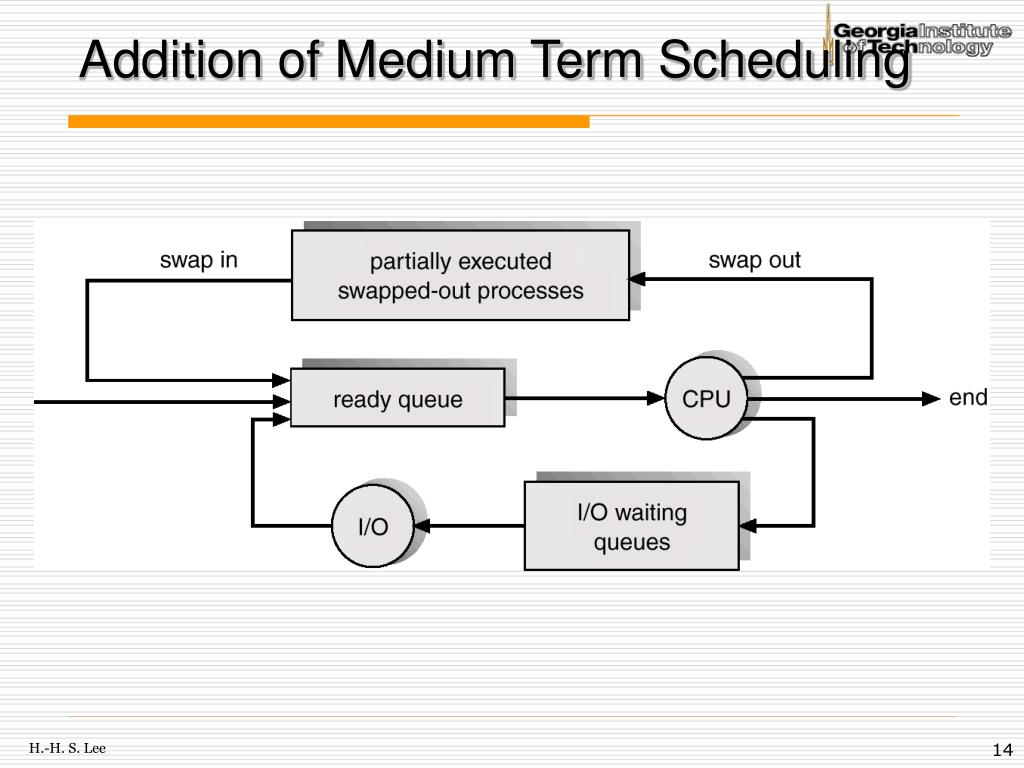 Schedulers • Long-term scheduler (or job scheduler) – selects which processes should be brought into the ready queue • Short-term scheduler (or CPU scheduler) – selects which process should be executed next and allocates CPU