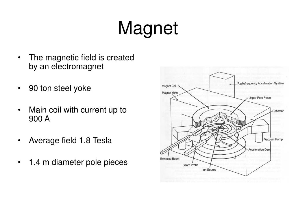 Major components • Magnet • Keeps particles on circular orbit • Focuses beam • RF • Accelerates beam