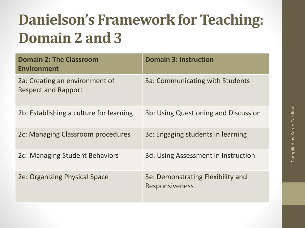 Danielson’s Framework for Teaching: Domain 2 and 3 Compiled by Karen Cardinali