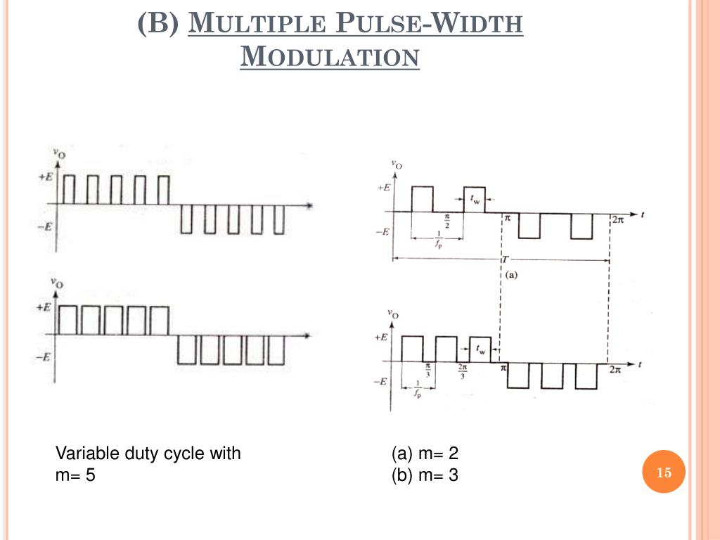 (B) Multiple Pulse-Width Modulation Variable duty cycle with m= 5 • m= 2 • m= 3
