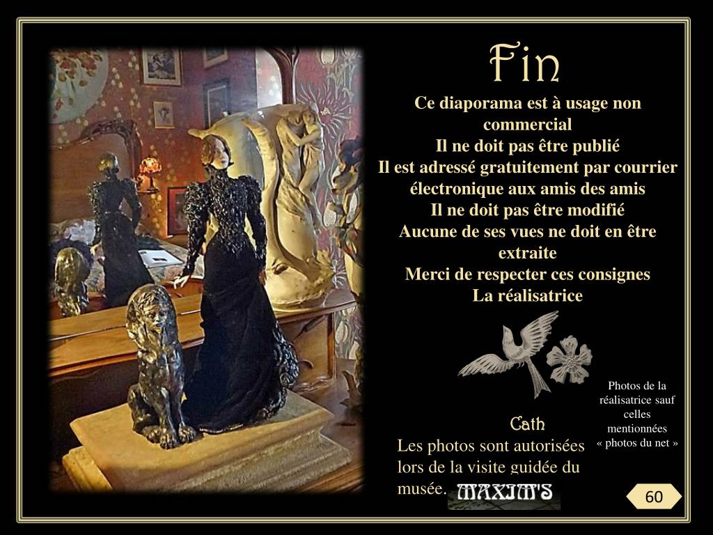 Fin Ce diaporama est à usage non commercial Il ne doit pas être publié Il est adressé gratuitement par courrier électronique aux amis des amis Il ne doit pas être modifié Aucune de ses vues ne doit en être extraite Merci de respecter ces consignes La réalisatrice Cath Photos de la réalisatrice sauf celles mentionnées « photos du net » Les photos sont autorisées lors de la visite guidée du musée. 60
