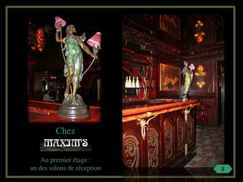 Quand Maxime devient En mai 1893, la belle Irma de Montigny, jolie courtisane, pousse la porte du petit rendez-vous de Cochers, regarde la salle et dit à Eugène Cornuché , l’associé de Maxime Gaillard : « je peux vous en faire le rendez-vous le plus célèbre de Paris si vous acceptez que je réside chez vous ». Petit à petit, Irma la Cocotte amène ses galants et pas des moindres : des journalistes, des militaires, des politiciens, des hommes d’affaire et même des princes. Le débit de boissons devient vite un restaurant où l’on chante, où l’on danse. « Maxime » devient « Maxim’s. ». Document du net 4