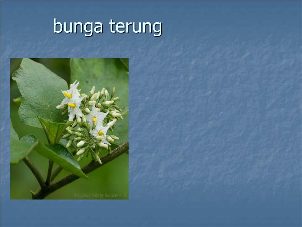 Tenda bunga/ Perigonium a. Serupa kelopak / calynus pd bunga Palmae • Serupa tajuk / colollinus pd anggrek, Lilia, Iris dll Tenda bunga ada : • Berlekatan / gamophyllus pd Lilia • Lepas/ bebas pd kembang sungsang