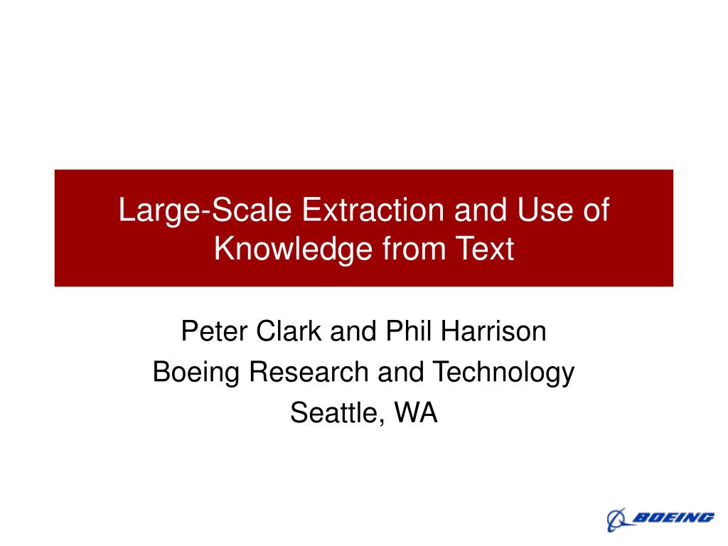 Large-Scale Extraction and Use of Knowledge from Text Peter Clark and Phil Harrison Boeing Research and Technology Seattle, WA
