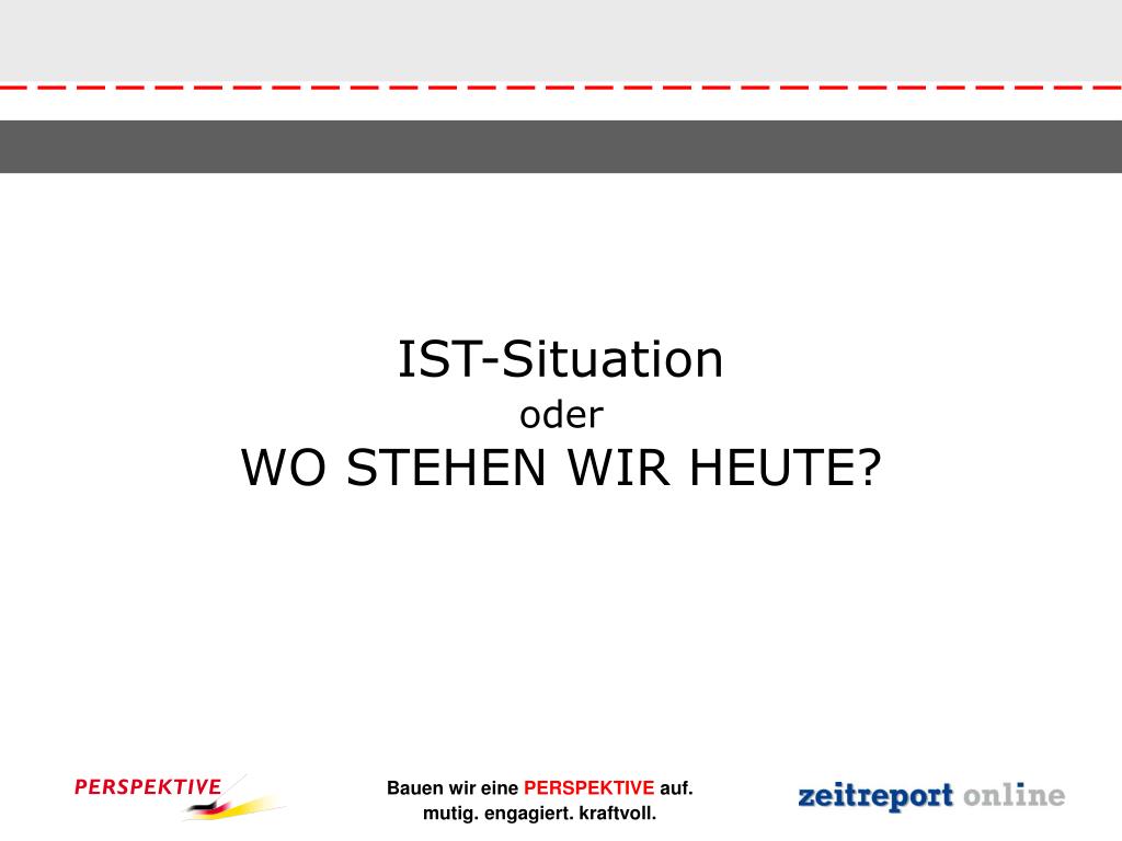 IST-Situation oder WO STEHEN WIR HEUTE?