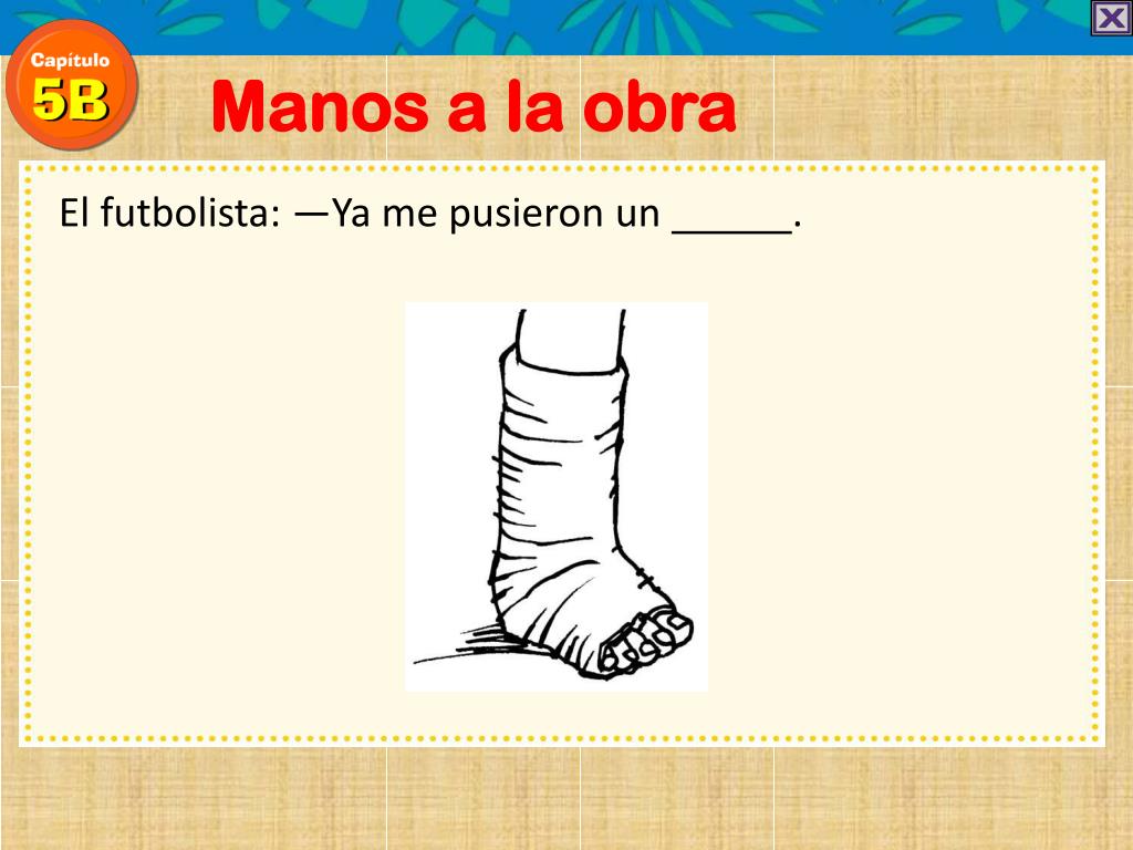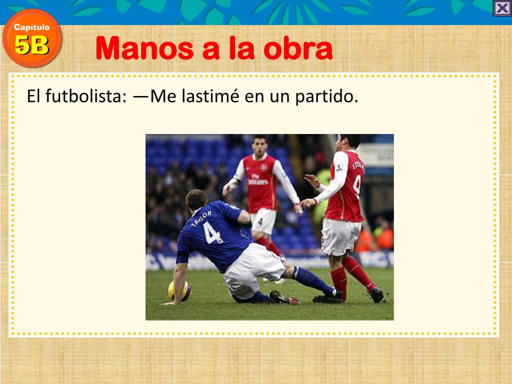 Manos a la obra El futbolista: —Me torcí el tobillo .