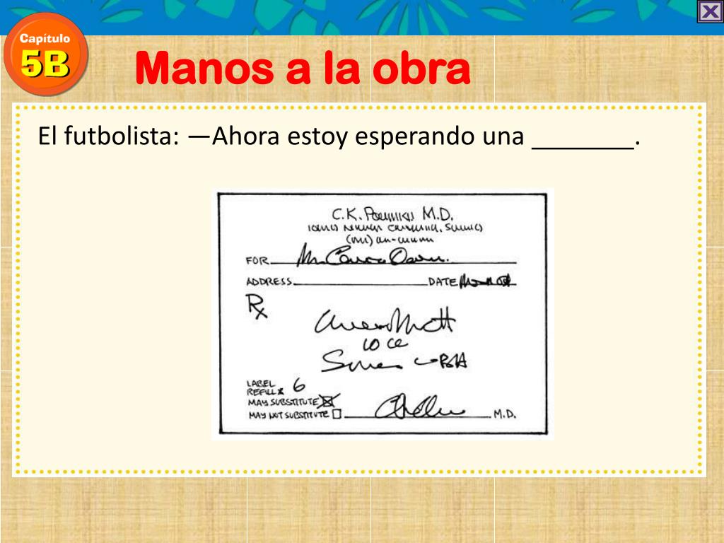 Manos a la obra El futbolista: —Ahora estoy esperando una .