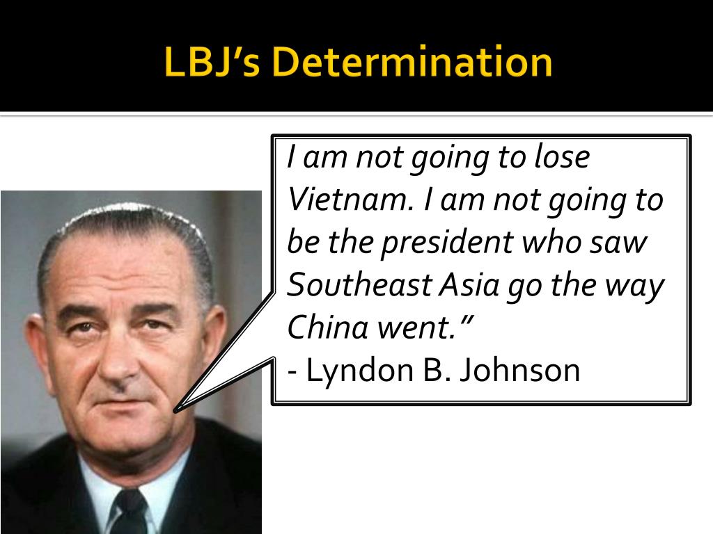 LBJ’s Determination I am not going to lose Vietnam. I am not going to be the president who saw Southeast Asia go the way China went.”- Lyndon B. Johnson