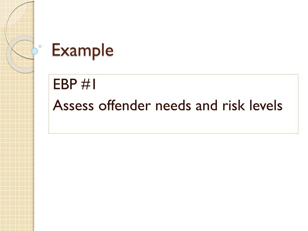 Example EBP #1 Assess offender needs and risk levels