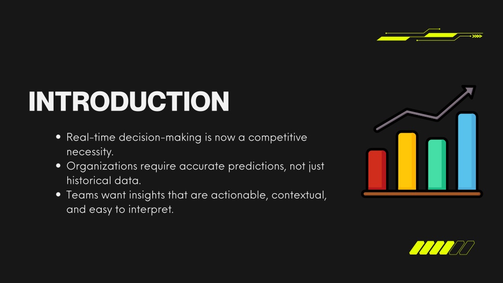 INTRODUCTION Real-time decision-making is now a competitive necessity. Organizations require accurate predictions, not just historical data. Teams want insights that are actionable, contextual, and easy to interpret.