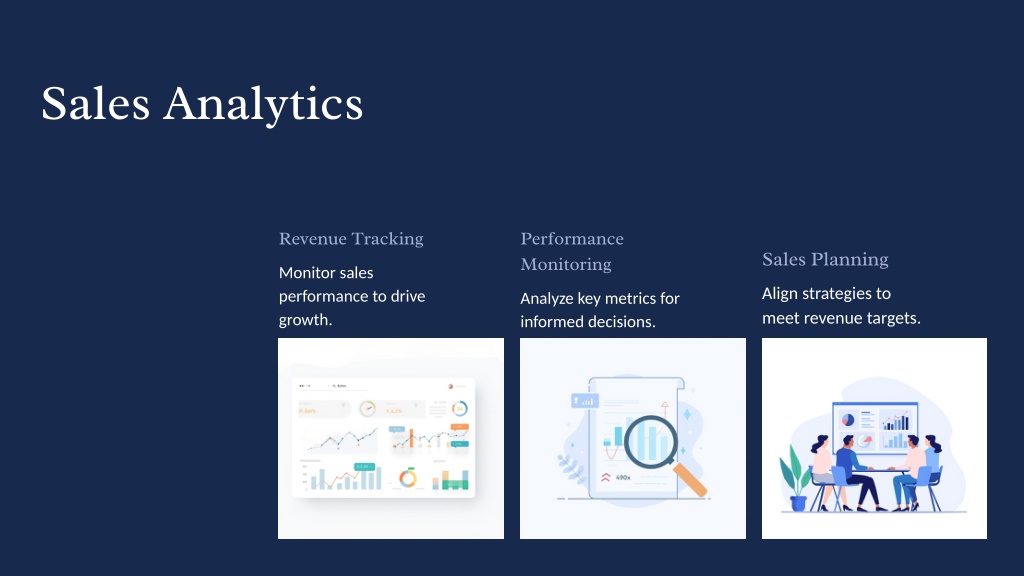 3. Sales Analytics Revenue Tracking Performance Monitoring Sales Planning Monitor sales performance to drive growth. Align strategies to meet revenue targets. Analyze key metrics for informed decisions.