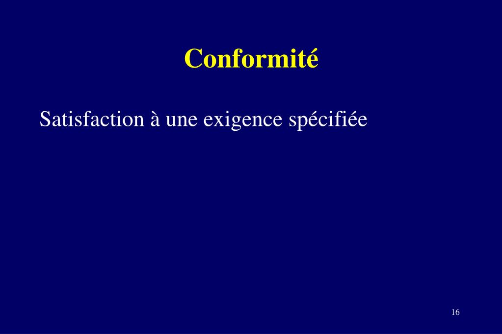 Contrôle Qualité • examen des caractéristiques d’un produit et comparaison aux exigences spécifiées • notion de tolérance • conformité a posteriori • échantillonnage,statistiques • contrôle destructeur • petits pois vs airbus