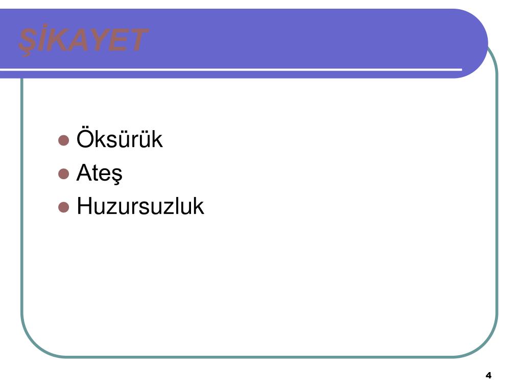 ŞİKAYET • Öksürük • Ateş • Huzursuzluk