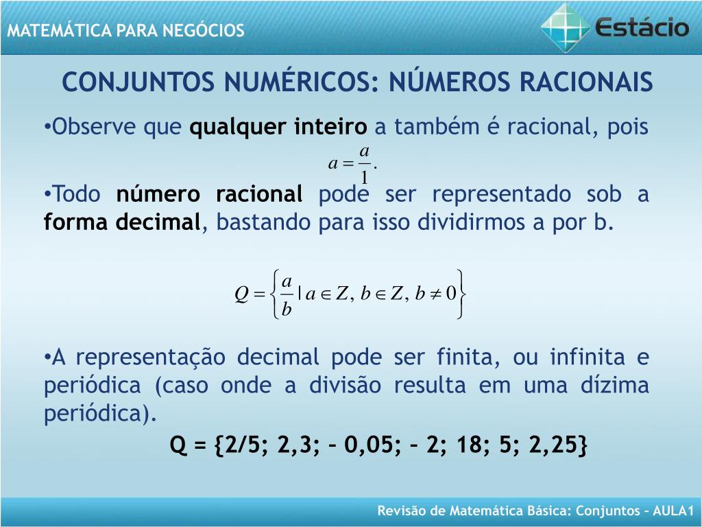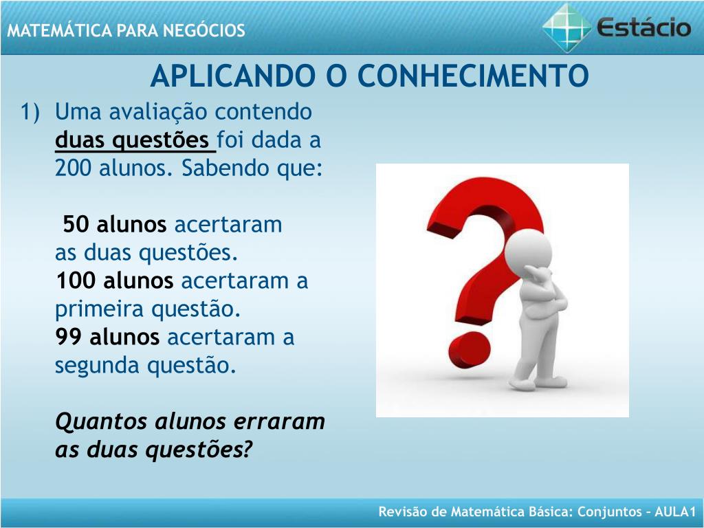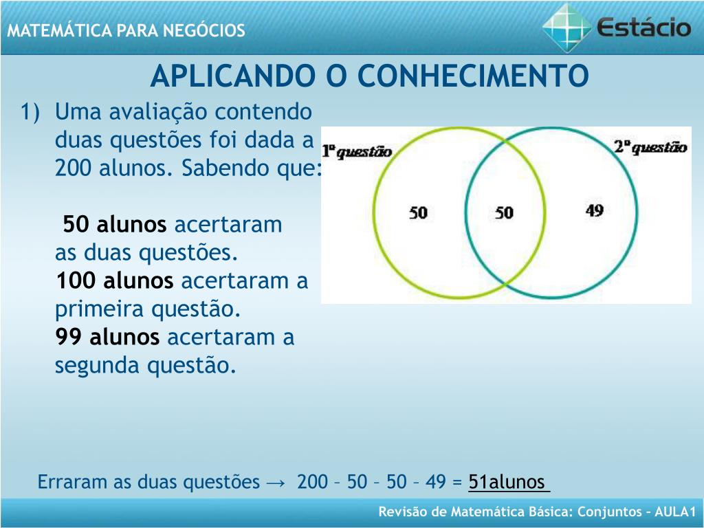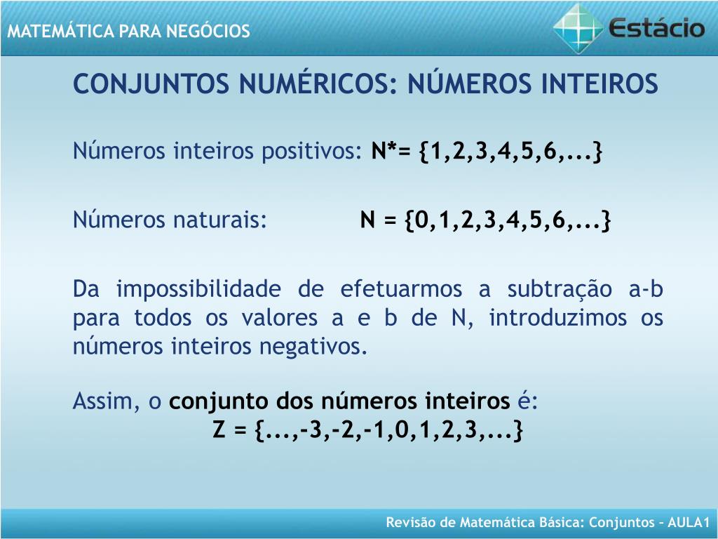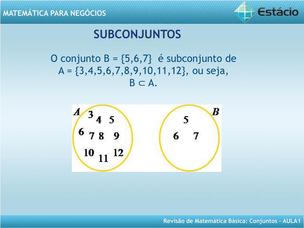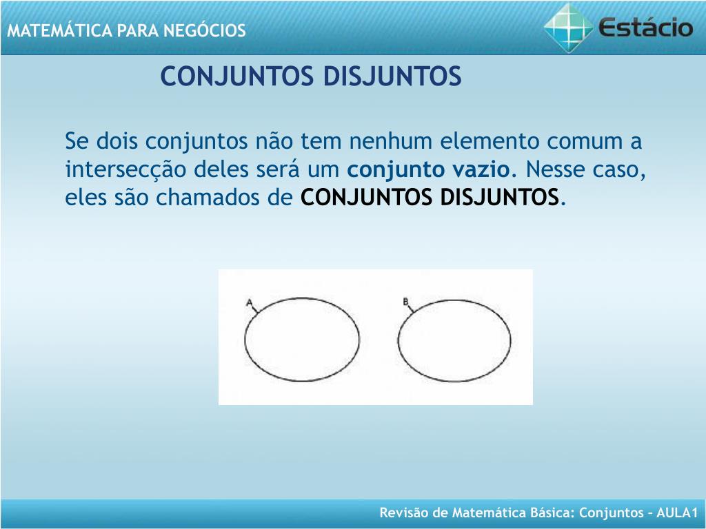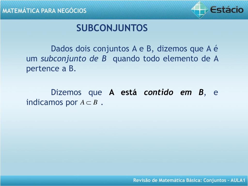MATEMÁTICA PARA NEGÓCIOS Aula 1- Revisão de Conjuntos
