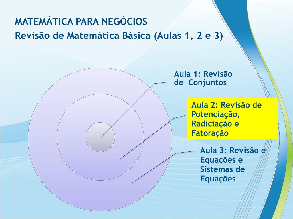 MATEMÁTICA PARA NEGÓCIOS Revisão de Matemática Básica (Aulas 1, 2 e 3)