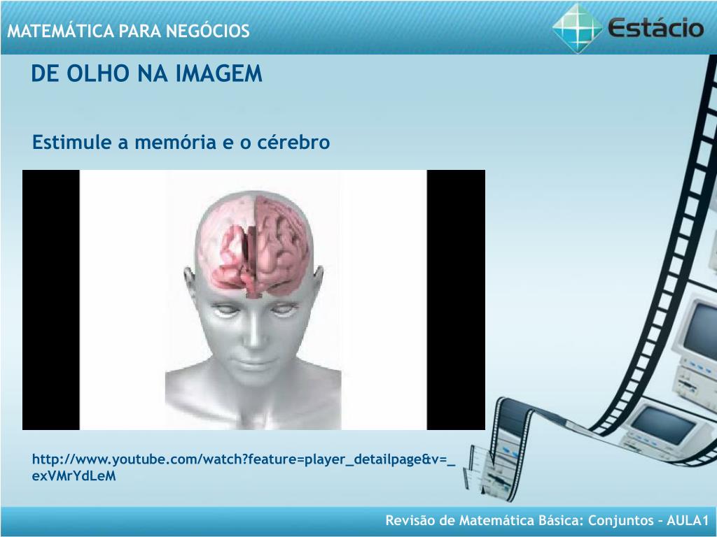 DE OLHO NA IMAGEM Estimule a memória e o cérebro http://www.youtube.com/watch?feature=player_detailpage&v=_exVMrYdLeM