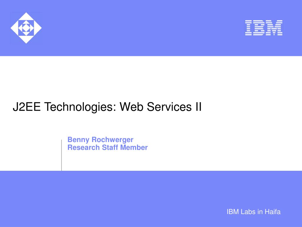 J2EE Technologies: Web Services II Benny Rochwerger Research Staff Member