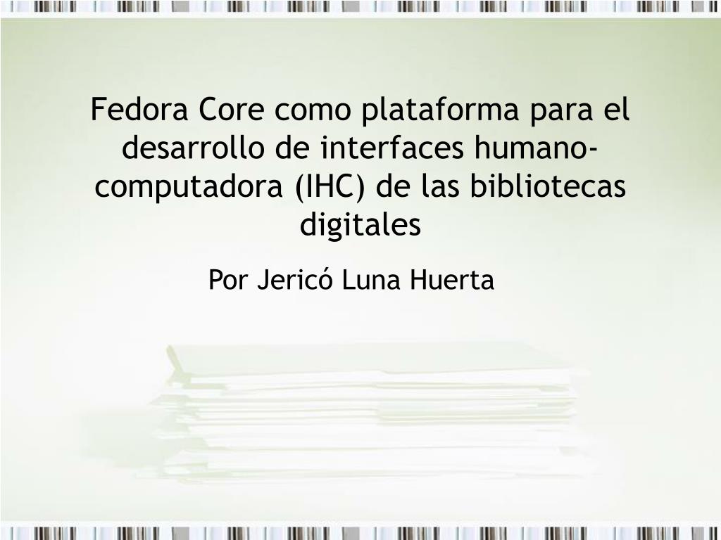 Fedora Core como plataforma para el desarrollo de interfaces humano-computadora (IHC) de las bibliotecas digitales Por Jericó Luna Huerta