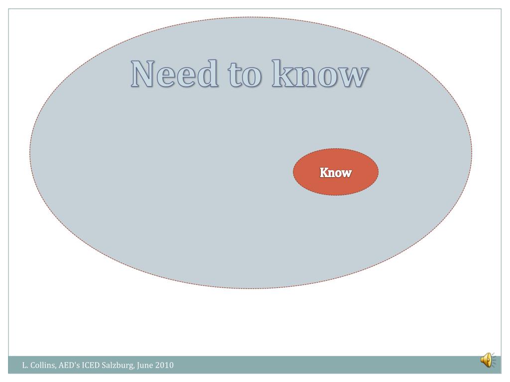 Need to know Know L. Collins, AED's ICED Salzburg, June 2010