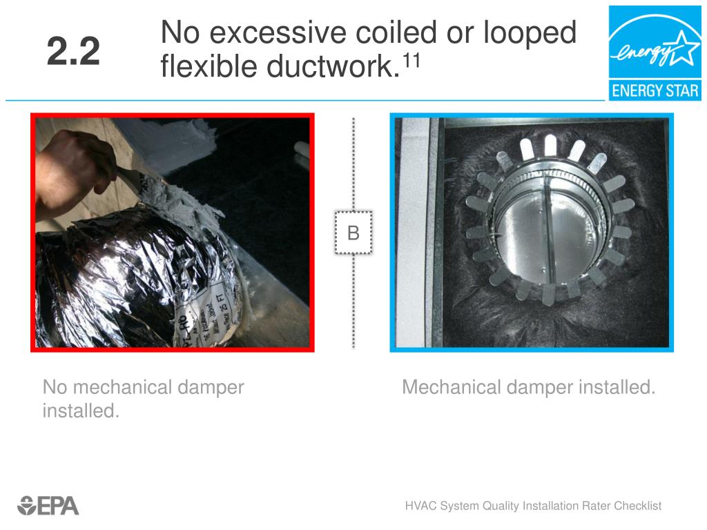2.2 No excessive coiled or looped flexible ductwork.11 B No mechanical damper installed. HVAC System Quality Installation Rater Checklist Mechanical damper installed.