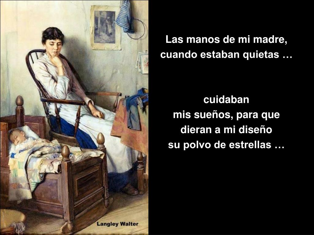 Las manos de mi madre, cuando estaban quietas … cuidaban mis sueños, para que dieran a mi diseño su polvo de estrellas …