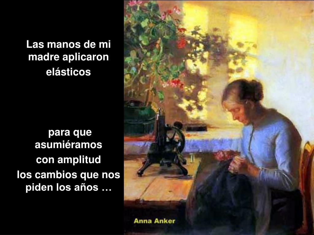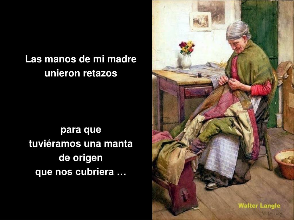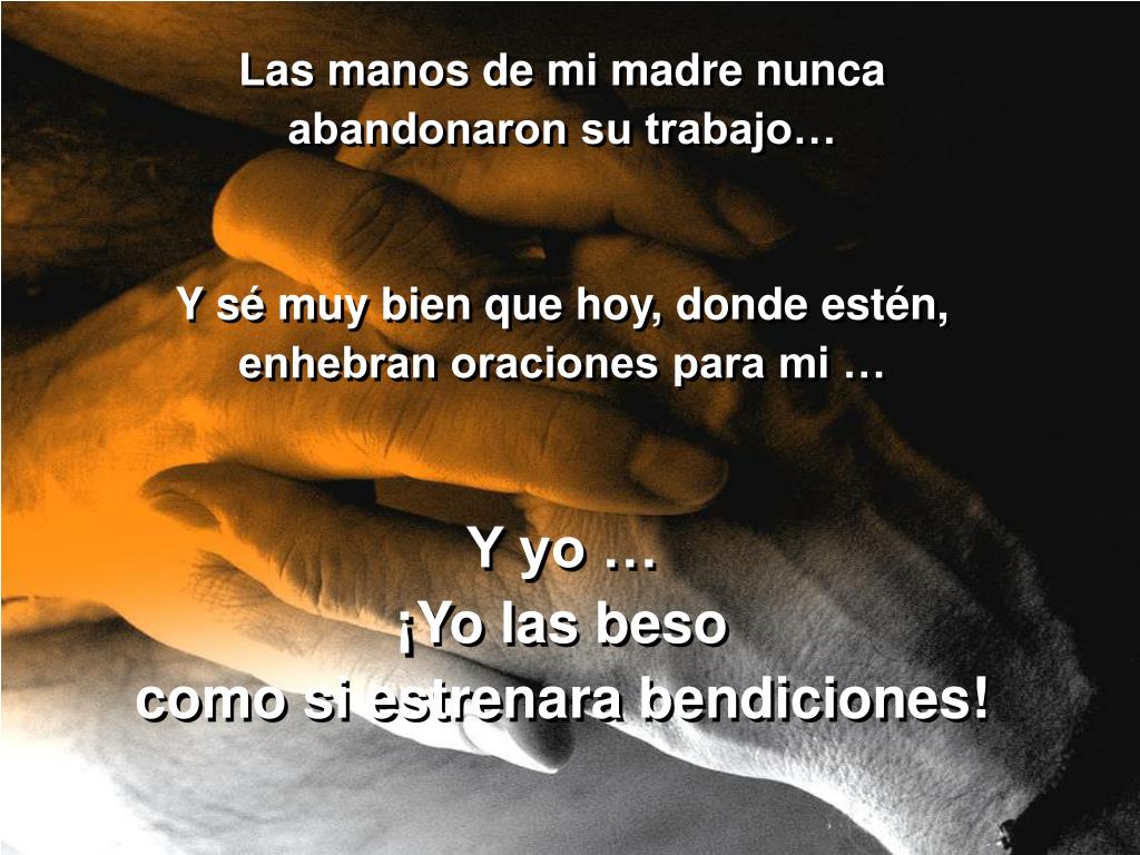 Las manos de mi madre nunca abandonaron su trabajo… Y sé muy bien que hoy, donde estén, enhebran oraciones para mi … Y yo … ¡Yo las beso como si estrenara bendiciones!