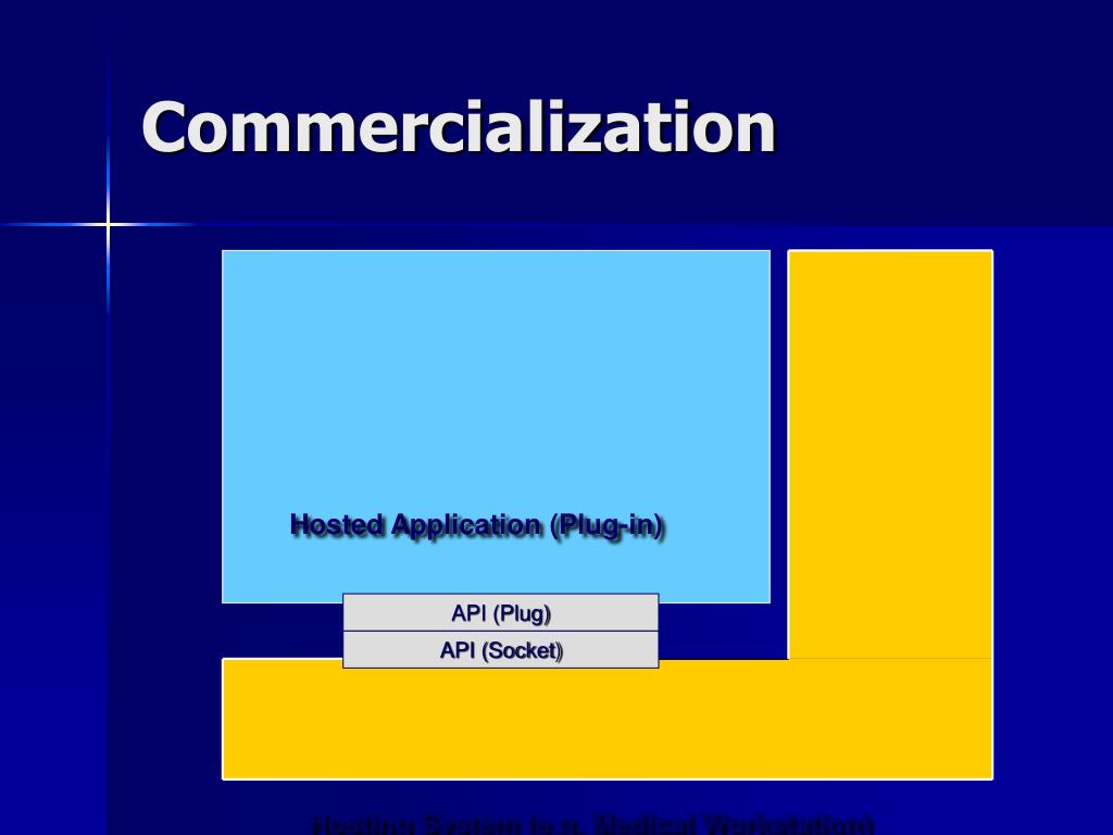 API (Plug) API (Socket) Hosting System (e.g. Medical Workstation) Commercialization Hosted Application (Plug-in)
