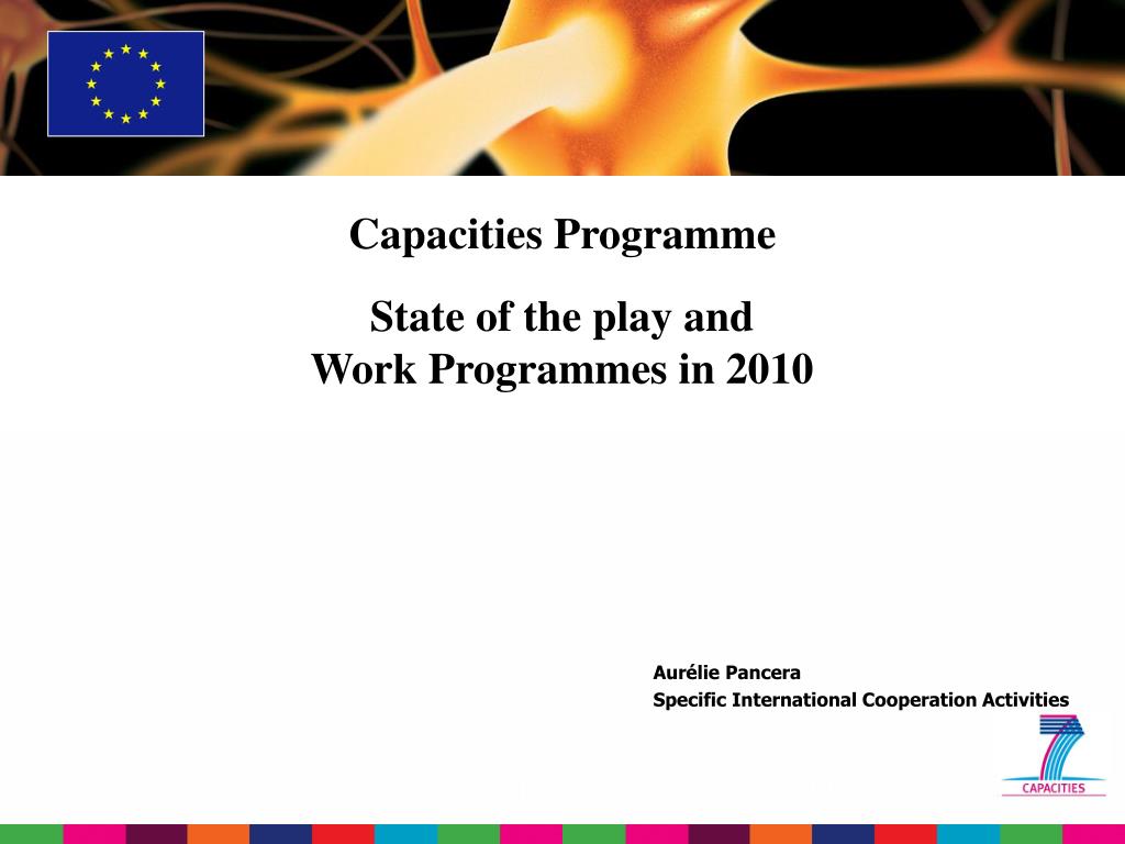 Capacities Programme State of the play and Work Programmes in 2010. Aurélie Pancera Specific International Cooperation Activities. People. Cooperation. FP7. Ideas. Capacities. International Cooperation FP7 approach. More inclusive More substantial More integrated More targeted