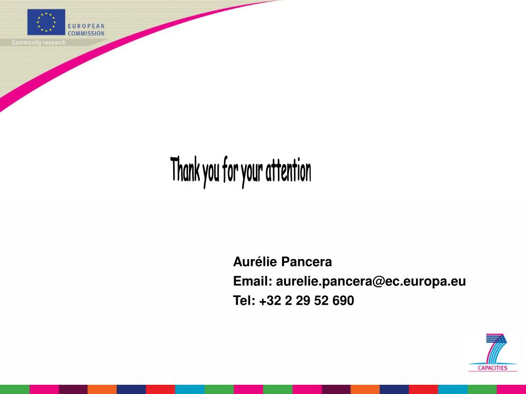 Thank you for your attention Aurélie Pancera Email: aurelie.pancera@ec.europa.eu Tel: +32 2 29 52 690