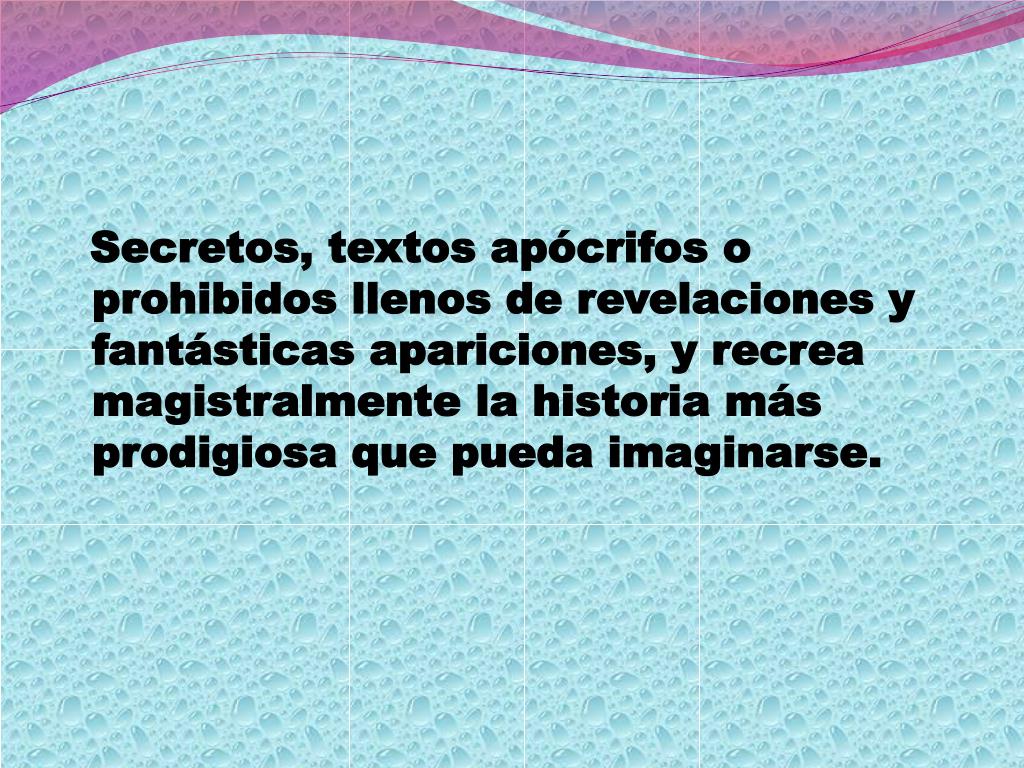 Secretos, textos apócrifos o prohibidos llenos de revelaciones y fantásticas apariciones, y recrea magistralmente la historia más prodigiosa que pueda imaginarse.
