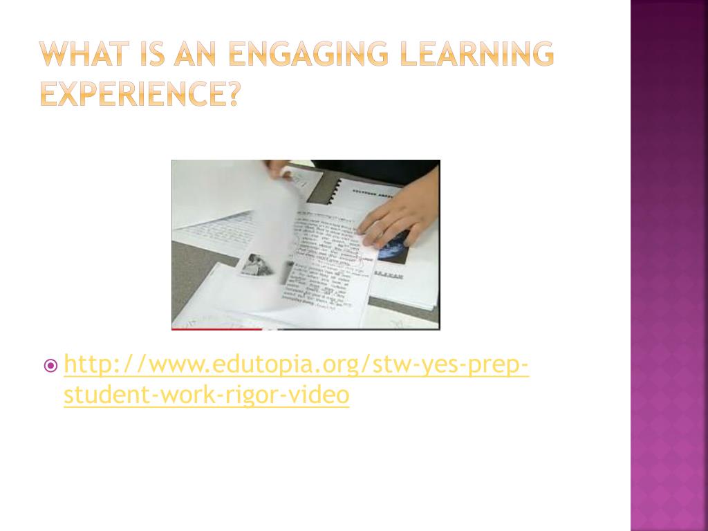What is an engaging learning experience? • http://www.edutopia.org/stw-yes-prep-student-work-rigor-video