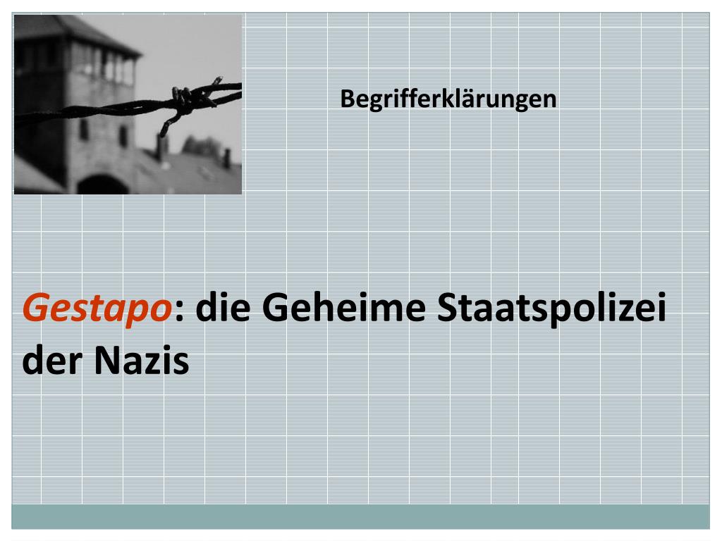 Begrifferklärungen Gestapo: die Geheime Staatspolizei der Nazis