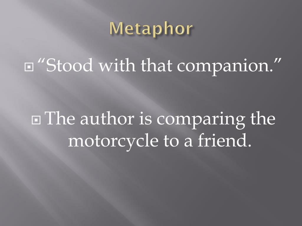 Metaphor • “Stood with that companion.” • The author is comparing the motorcycle to a friend.