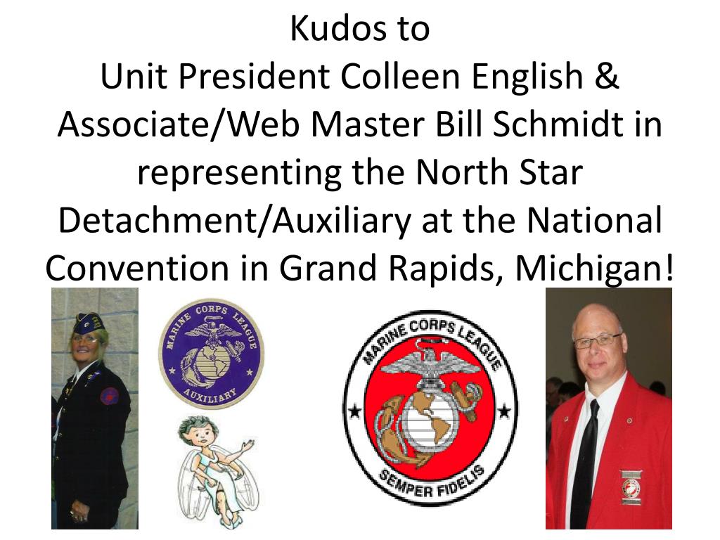 Kudos to Unit President Colleen English &Associate/Web Master Bill Schmidt in representing the North Star Detachment/Auxiliary at the National Convention in Grand Rapids, Michigan!