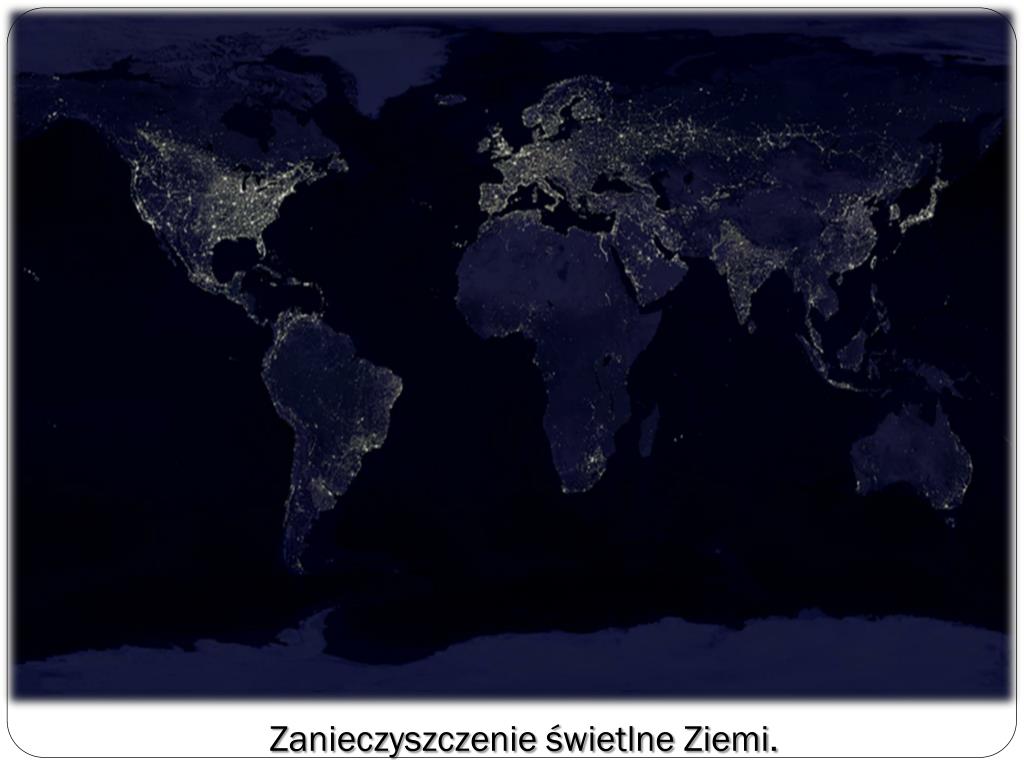 Kolejnym tematem omawianym na następnych zajęciach był „CZY ŚWIATŁO MOŻE BYĆ UCIĄŻLIWE?” Żyjąc w tzw. Cywilizowanym świecie, przyzwyczailiśmy się do wszechobecnego światła. Stało się ono dla nas niezbędnym i naturalnym elementem otoczenia do tego stopnia, że jego brak (związany np. z awarią) traktujemy jako kłopotliwą anomalię. Nie ma w tym oczywiście nic złego – światło jest cenną zdobyczą cywilizacyjną, która w dużej mierze umożliwiła rozwój ludzkości, jednak z biegiem czasu, gdy jest go coraz więcej, ujawniają się również negatywne skutki nadmiernego oświetlenia.