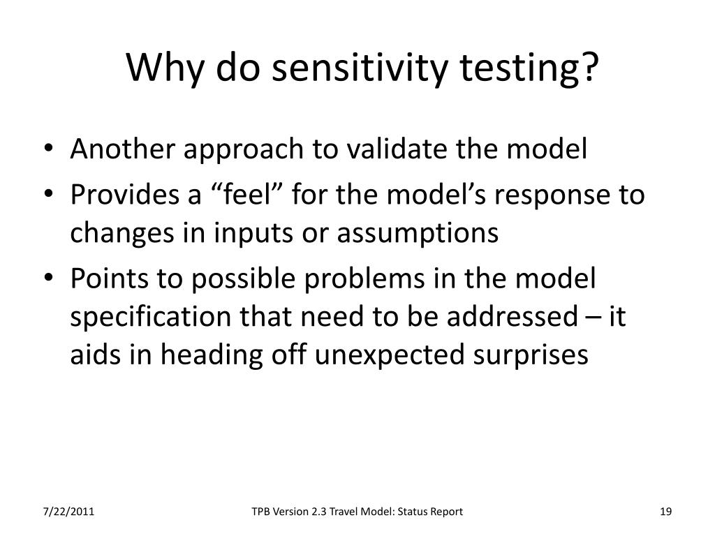 Sensitivity tests TPB Version 2.3 Travel Model: Status Report