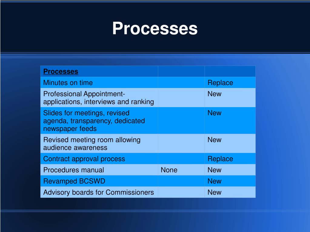 Issues • Not so obvious • Purchasing from non-authorized sources • Signing unreviewed contracts • Making appointments without talking to candidates • No continuity or research on many matters • Lack of teamwork in offices, elected officials and appointees