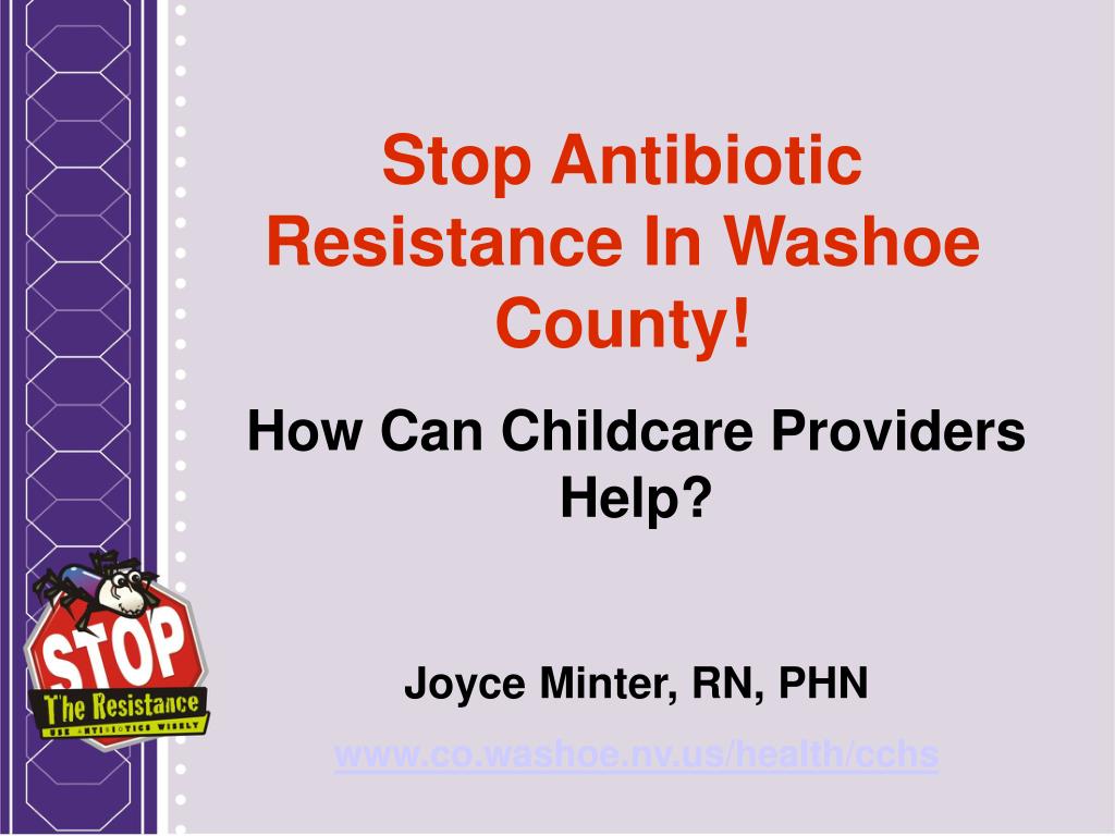 Stop Antibiotic Resistance In Washoe County! How Can Childcare Providers Help? Joyce Minter, RN, PHN www.co.washoe.nv.us/health/cchs