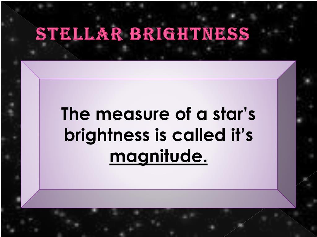 STELLAR BRIGHTNESS The measure of a star’s brightness is called it’s magnitude.